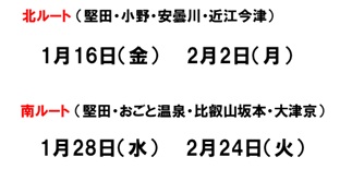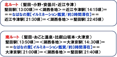 | お申し込み・お問合せ先 | 江若貸切バス旅行センター : 滋賀県知事登録旅行業第2-173号 電話 077-573-2708 (受付:平日8:30~17:30) |