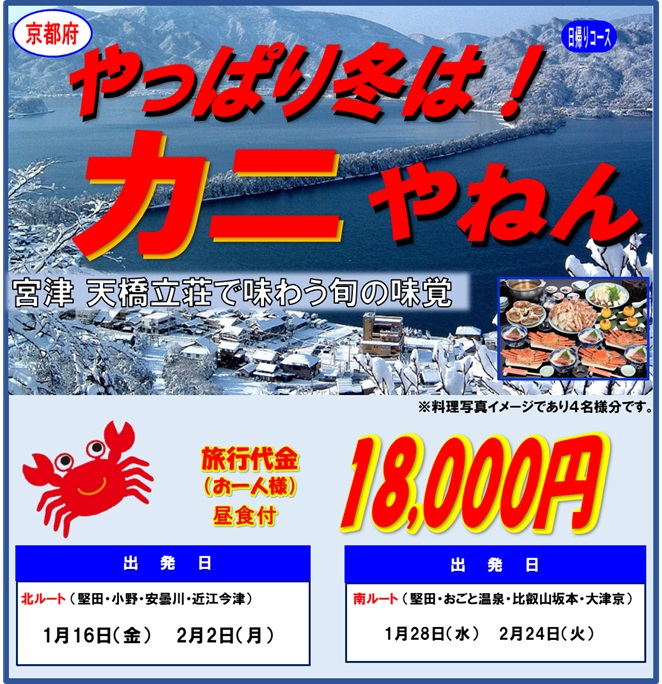 | お申し込み・お問合せ先 | 江若貸切バス旅行センター : 滋賀県知事登録旅行業第2-173号 電話 077-573-2708 (受付:平日8:30~17:30) |