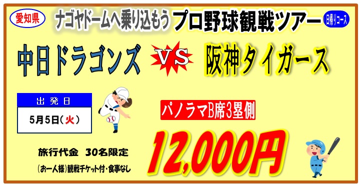 プロ野球観戦ツアー 中日ドラゴンズVS阪神タイガース